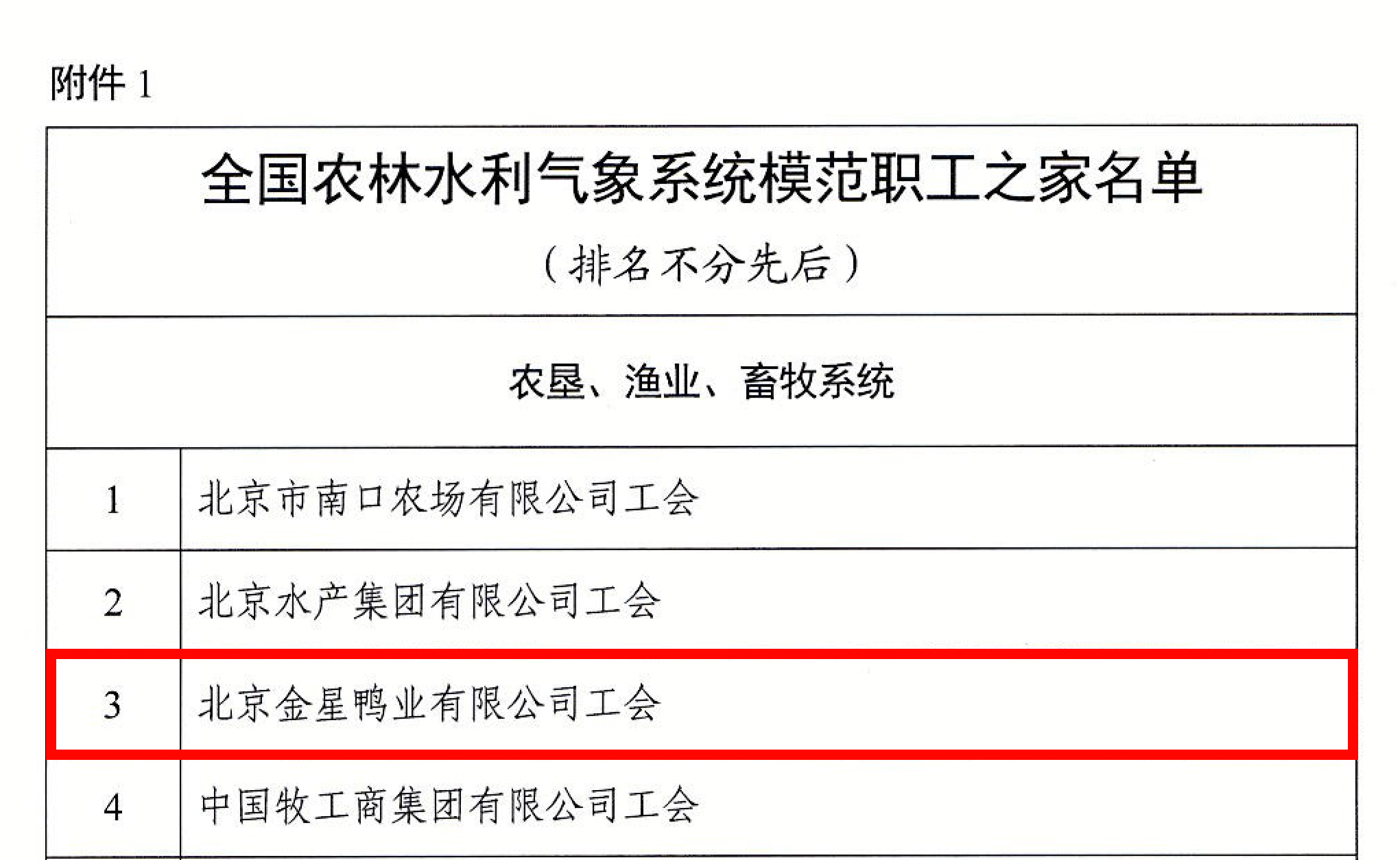 近期,全國農(nóng)林水利氣象系統(tǒng)為樹立典型、宣傳先進(jìn), 激發(fā)基層工會組織建設(shè)職工之家的積極性和創(chuàng)造性,中國農(nóng)林水利氣象工會決定確認(rèn)“北京金星鴨業(yè)有限公司工會”等100 家單位為全國農(nóng)林水利氣象系統(tǒng)模范職工之家。北京金星鴨業(yè)有限公司工會獲得全國“模范職工之家”榮譽(yù)稱號。