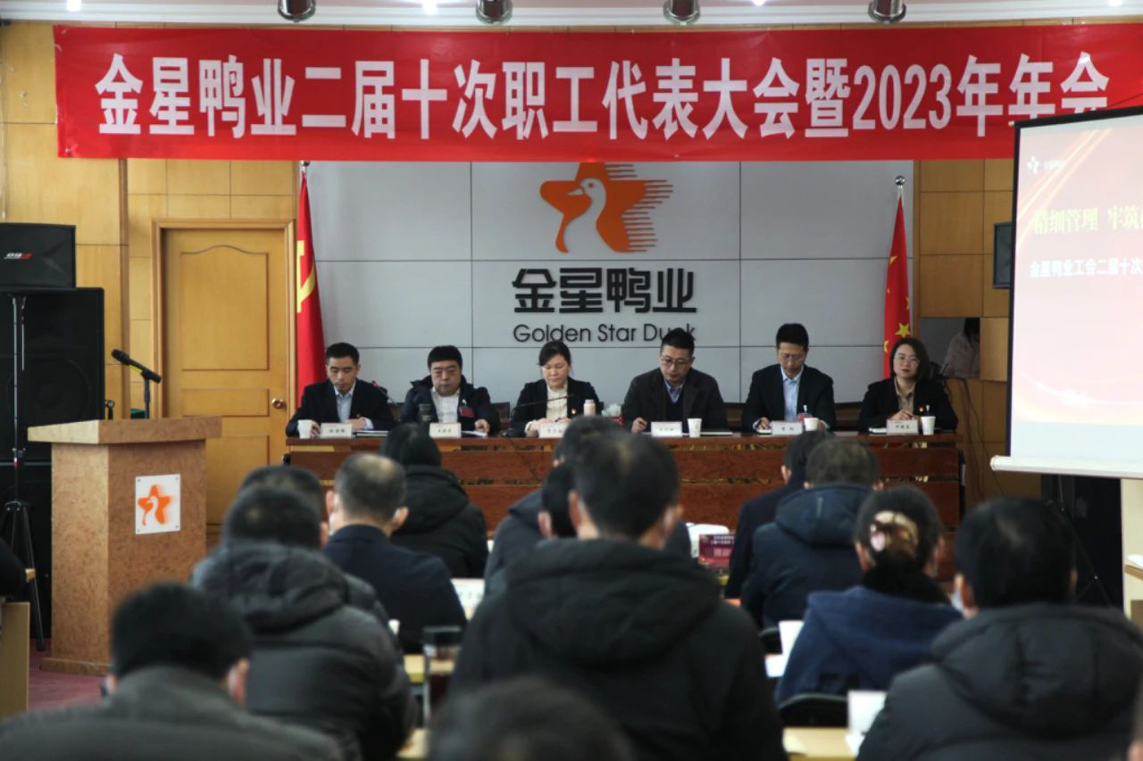 1月13日,金星鴨業(yè)二屆十次職工代表大會暨2023年年會召開,公司高管團隊、職工代表、受表彰人員代表等60余人參會。金星鴨業(yè)董事長、首農(nóng)股份財務部部長鄒積璐,金星鴨業(yè)監(jiān)事、首農(nóng)股份審計合規(guī)部部長李綱,首農(nóng)股份全面預算中心經(jīng)理申輝出席會議。