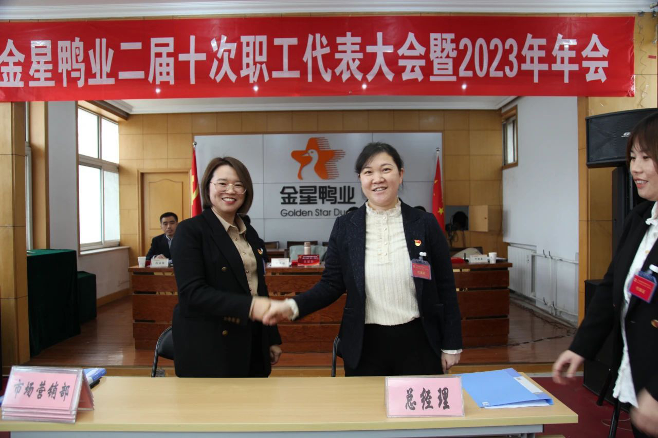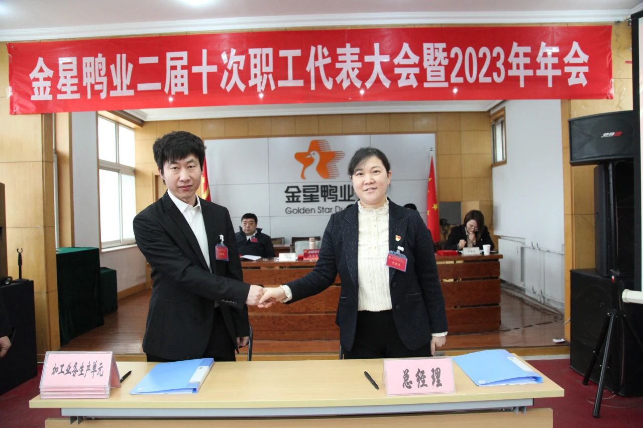 (金星鴨業(yè)總經(jīng)理與各業(yè)務單元負責人代表簽訂目標責任書)