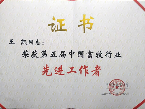 此外,公司總經(jīng)理王凱榮獲第五屆中國(guó)畜牧行業(yè)先進(jìn)工作者稱號(hào)。