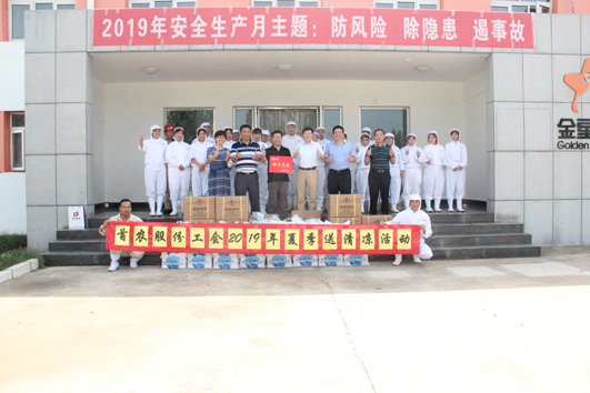 同月,金星鴨業(yè)工會(huì)也開展了夏季慰問活動(dòng),為一線職工送去了飲料、綠豆、白糖等解暑食品及防暑降溫物品。