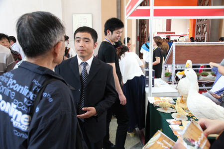 ??????? 本屆博覽會(huì)將全部展區(qū)分成四部分:主打特色、老字號(hào)品牌的食品展區(qū);以綠色有機(jī)農(nóng)產(chǎn)品為賣點(diǎn)的綠色農(nóng)產(chǎn)品展區(qū);主營(yíng)調(diào)味料、食品加工監(jiān)測(cè)設(shè)備、食品模型等的餐飲供應(yīng)商展區(qū)以及特色美食展區(qū)。金星鴨業(yè)所在的綠色農(nóng)產(chǎn)品展區(qū)從展會(huì)開始就吸引了大量觀眾參觀,公司工作人員結(jié)合公眾近期感興趣的食品安全問題向觀眾詳細(xì)介紹了公司北京鴨綠色生態(tài)養(yǎng)殖模式,并拿出北京鴨標(biāo)本講解北京鴨的特點(diǎn)和公司完整的北京鴨產(chǎn)業(yè)鏈。我公司還被本屆組委會(huì)推薦為“食品安全示范單位”。