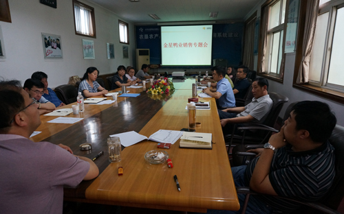 ? ? ? ? 7月14日,公司召開市場工作專題會(huì),會(huì)議就當(dāng)前公司營銷面臨的一系列問題展開討論。公司總經(jīng)理王凱,黨委書記、副總經(jīng)理胡勝強(qiáng),副總經(jīng)理王曉東以及金星分公司、承德鴨業(yè)、銷售公司主管銷售工作的負(fù)責(zé)人參加了會(huì)議。