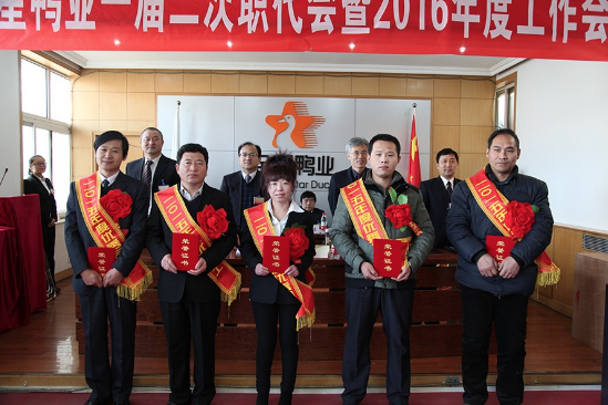 此外,會議審議通過并重新簽訂了《北京金星鴨業(yè)有限公司工資集體協(xié)商專項協(xié)議》等三項協(xié)議,公司與各基層單位代表簽訂了2016年各項責(zé)任書,表彰了10名2015年度優(yōu)秀員工。