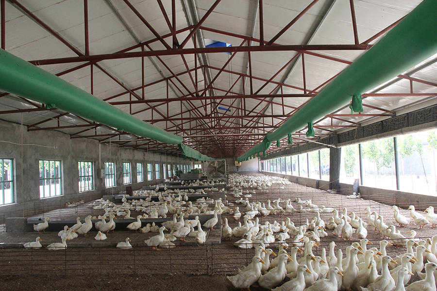 ? ? ? ? 暑熱將至,為盡量減少高溫給鴨群帶來的應(yīng)激,保證夏季生產(chǎn)任務(wù)順利進(jìn)行。6月,西部養(yǎng)殖公司為京順養(yǎng)殖基地的每一棟鴨舍安裝了通風(fēng)降溫設(shè)備。