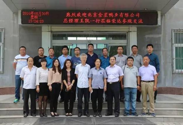 8月30日,公司總經(jīng)理王凱,黨委書記、副總經(jīng)理胡勝強(qiáng),副總經(jīng)理王曉東一行19人參觀了位于山東高唐縣的山東榮達(dá)農(nóng)業(yè)發(fā)展有限公司。榮達(dá)公司董事長徐保旗、技術(shù)總監(jiān)張慧玲等領(lǐng)導(dǎo)親切接待,并陪同參觀了種鴨養(yǎng)殖小區(qū)、蛋鴨養(yǎng)殖小區(qū)、生態(tài)農(nóng)場、合作社、飼料廠、加工廠和孵化場等,雙方還進(jìn)行了深入的座談交流。