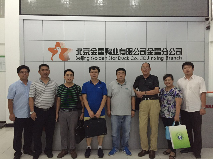 8月22日,北京市農(nóng)業(yè)局、北京市動物衛(wèi)生監(jiān)督所、中國動物疫病預(yù)防控制中心、遼寧省動物衛(wèi)生監(jiān)督所相關(guān)領(lǐng)導(dǎo)等一行5人來到金星分公司進行參觀考察,就如何將北京鴨屠宰加工過程由企標上升到行標進行調(diào)研,公司副總經(jīng)理王曉東全程陪同。