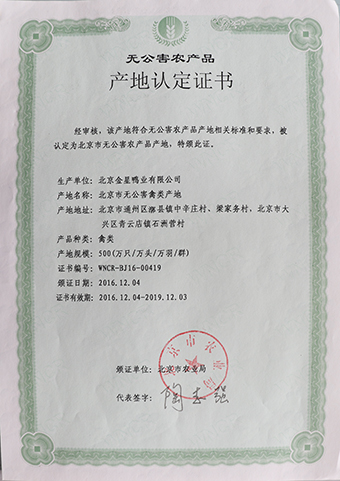 此項(xiàng)認(rèn)證的通過(guò),既是農(nóng)產(chǎn)品質(zhì)量監(jiān)督部門對(duì)我公司北京鴨產(chǎn)品質(zhì)量的認(rèn)可,也極大的提升了公司產(chǎn)品品牌形象。